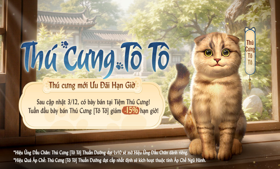 - Thú cưng phẩm chất cao Tô Tô ra mắt, tuần đầu sẽ giảm giá 15%, xin đừng bỏ lỡ.